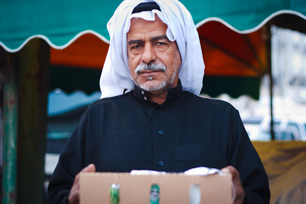 عندما بدأت بتصوير هذا الرجل المسن، ناديته وأجابني ولكن لم يواجه الكاميرا حتى استوعبت أنه بالواقع رجل أعمى ! لم أكن أعرف ذلك من البداية