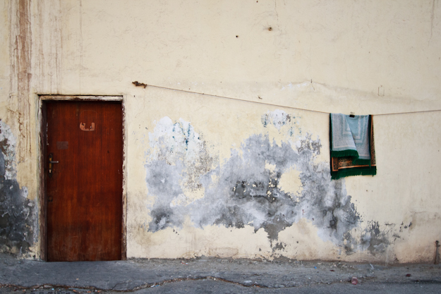 This is the 2nd wooden door that I saw, weird enough that he has a prayer carpet hanging there