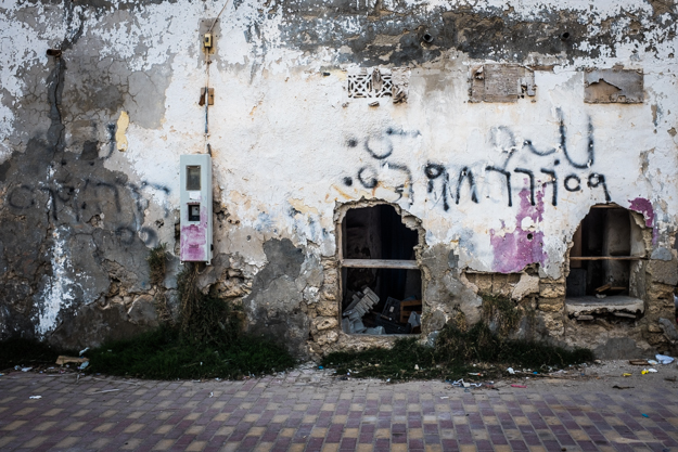جدار قديم لأحد المنازل القديمة ولكن الكتابات أفسدته مظهره