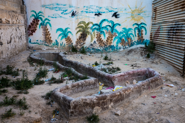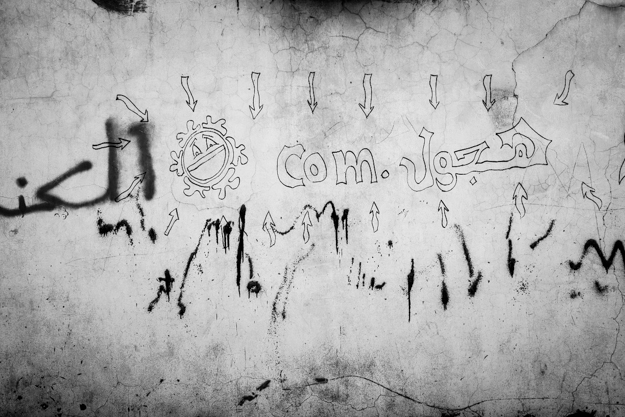 أحد أطفال هذا الحي يلعب على الجدار بحجارة صغيرة ( وليس الكتابة عليه ) ـ