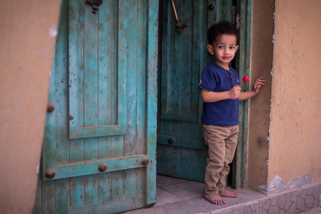 هذا الصبي الصغير كان يأكل الحلوى على عتبة الباب، لم يهرب مني عند رؤيتي
