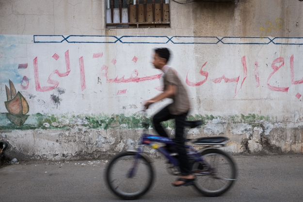 أحد الصبية يسلك هذا الممر الضيق لمنزلهم
