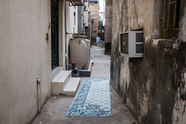 يوجد هذا البساط في واحد من الممرات الضيقة أمام المنزل، عادة قديمة ومتواضعة