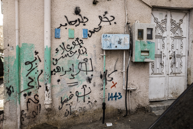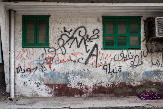 بعض كتابات الجدران والتي كانت كثيرة ومنتشرة بالحي