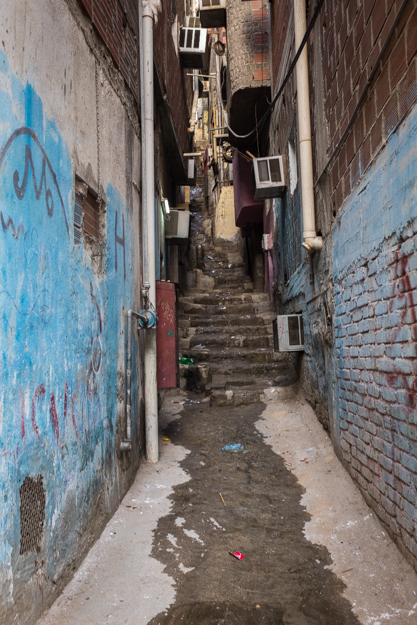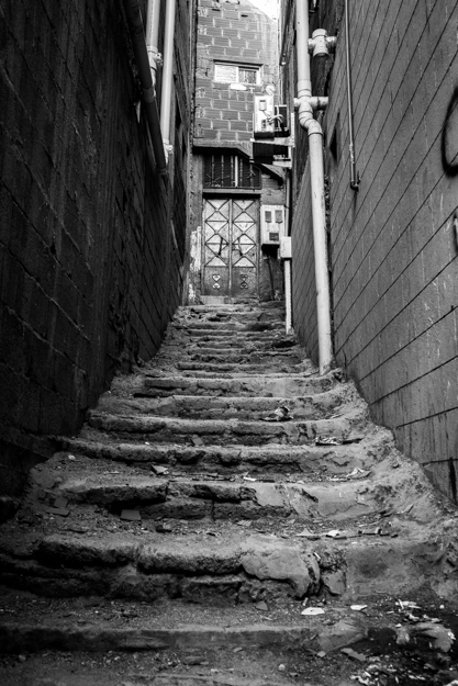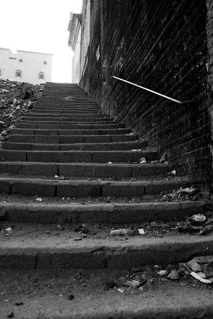 مرة اخرى مع عتبات الدرج ولكن هذه المرة من الأسفل، قيل لي أنها توصلني مرة اخرى إلى السوق الذي مررت به !