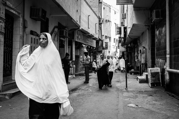 امرأة مسنة ترتاح هنا أمام فندق مغلق والرجل كان ماراً ينظر بإتجاهي، أعتقد لو وضعتها في مكان اخر لا أحد سيقول أن هذه الصورة من السعودية ولكنها حقاً كذلك ومن مكة !