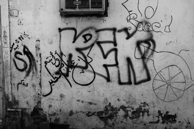 وبالطبع هناك الكثير من كتابات الجدران في كل مكان، المختلف أنه هناك أكثر من لغة