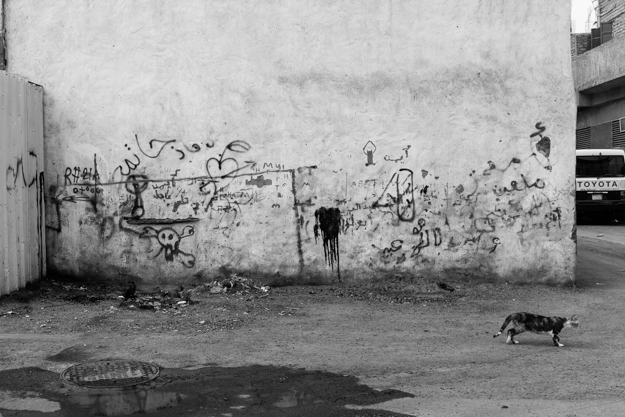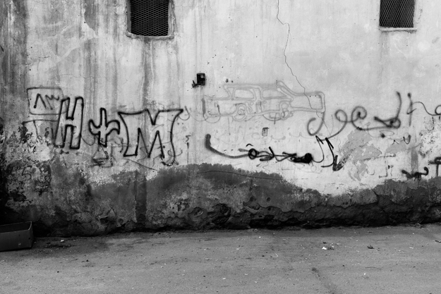 This side of the street speak a lot and has a lot ! children playing here, someone abandoned his car, wall writings, old house and more !
