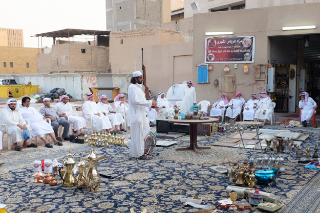أول صورة من الجولة الاولى، هذه الساحة الصغيرة تستخدم للحراج على بعض التحف والمقتنيات وأي شيء يناسب هذا المكان، الشخص الذي يمسك بالسلاح هو الدلال