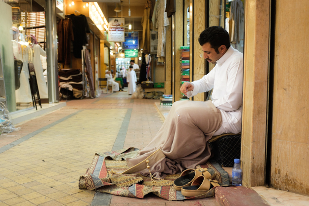 How the market look between the hallways, in the last photo he’s sewing a very traditional rob for saudi man called ” AlBishet “