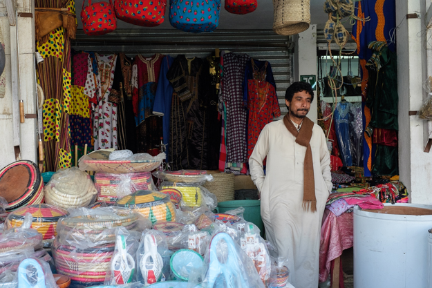 محل شعبي يقوم ببيع منتوجات مصنوعة يدوياً كانت ولا تزال تستخدم في هذه المنطقة، كانت هناك امرأة جالسة ولكنها رفضت أن تكون في الصورة