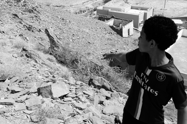 Before I arrive to Muhayil, I was noticed the small villages around me looking for something to make me stop and photograph. Then I saw a small mountain filled with historical and old houses from the bottom to the top ! when I stopped I noticed this little boy and he was Waleed. He was kind enough to take me to these houses and was explaining about them.