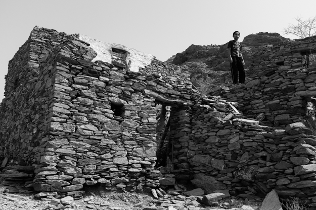قبل أن أصل إلى محايل عسير كنت ألاحظ حولي على الطريق القرى الصغير والبيوت المتنشرة باحثاً عن شيء يجذبني لتصويره. حتى رأيت جبلاً صغيراً إلى حدٍ ما ولكنه يحتوي على بيوت أثرية حجرية وقديمة من أسفله وحتى القمة ! عندما توقفت انتبهت لهذا الصبي الصغير الذي يدعى وليد، لقد كان لطيفاً معي واخذني إلى هذا الجبل والذي يقع عند منزله الذي يعيش به وهو يشرح لي عن هذه البيوت القديمة.