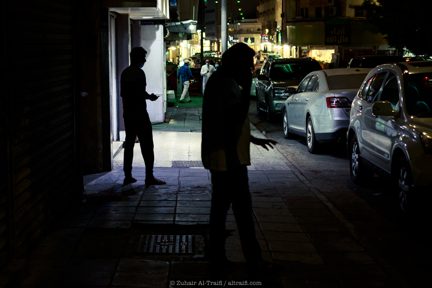 جولة تصوير اخرى في الليل في محاولة إقتناص اللحظات المتقاطعة مع الضوء والظل، هذه المرة قمت بزيارة وسط القطيف من باب التغيير وفي الحقيقة التصوير في الليل لوحده يعتبر تحدي والبحث عن اللحظات العفوية ليس أمراً سهلاً، أيضاً قمت بإستغلال تحديث اللايتروم الجديد المعني في تحكم اكثر في معالجة الألوان وهو أمر مميز إذا بدأت بالإعتياد عليه وقمت بإستخدامه في أكثر من صورة.