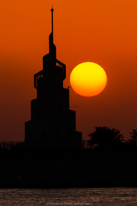قمت مؤخراً بشراء عدسة جديدة وأضفتها إلى عدة التصوير الخاصة بي وهي عدسة تامرون ١٥٠-٦٠٠مم هذه العدسة عادة تستخدم في تصوير الحيوانات البرية أو التصوير الرياضي بسبب قوة التقريب الهائلة لديها ولكنني كانت لدي خطط اخرى بما أن هذين المجالين لا يثيرون اهتمامي كثيراً، بدأت في مجال صعب إلى حدٍ ما وهو تصوير الشمس والقمر مع المباني وأحياناً مع الناس في محاولة لإظهار روعة حجم الشمس والقمر التي ممكن ان تظهر في هذه الصور، طبعاً كل هذا الامر يعتمد على الطرق الصحيحة للحصول على نتيجة رائعة والعدسة هذه تساعد على الحفاظ على جودة الصورة بشكل كبير جداً. على كل حال وبدون شرح أكثر عن هذا الموضوع، هذه بعض المحاولات لإلتقاط الشمس مع برج جزيرة المرجان المعروف وهي جزيرة صناعية وكانت المحاولات من عدة مواقع من أيام مختلفة.