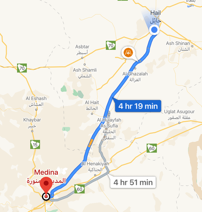 اليوم السادس – انطلقت صباحاً مودعاً منطقة حائل في الطريق إلى منطقة المدينة المنورة، سلكت الطرقات الغير المباشرة مروراً بعدة محافظات مثل الحليفة والحناكية والصويدرة، وكان معظم الطريق ممتعاً مليئاً بالجبال والأشجار وأفضل من ذلك أن الطريق هادئ غير مزدحم، توقفت عدة مرات للتصوير وللراحة إلى الدرجة أنني لم أصل إلى المدينة إلا قبيل المغرب بساعة فقط، في المساء كانت المصادفة الجميلة بلقاء الاستاذ المصور ماجد الأهدل حيث كان متواجداً لليلة واحدة في المدينة لذا كان هذا اليوم جيداً وطويلاً.