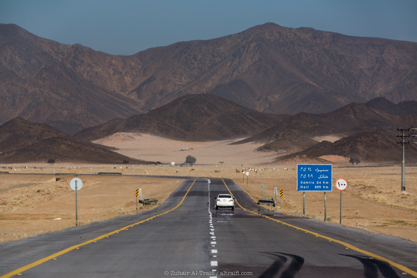 في رحلتي الفوتوغرافية الأخيرة كنت قد خططت مسبقاً في تصوير سلسلة صور من الطرق السريعة ذات المسار الواحد بواسطة عدسة ٧٠-٢٠٠مم حتى أستطيع بتصوير الشارع بمنظور مختلف، لذا في كل مرة توجهت لمدينة اخرى أقوم بإختيار الطريق الأطول حتى أصل إلى هذا النوع من الطرق، البيئة من الرمال والجبال مختلفة من منطقة إلى اخرى وأنا شخصياً لازلت مذهولاً في كل مرة أشاهد ألوان الجبال البركانية على الطريق، أعتقد أنها مشهد ممتع أكثر من المشاهد الخضراء بالنسبة لي! رحلتي كانت فقط في شمال السعودية لذا كل الصور تم إلتقاطها في منطقة القصيم، ومنطقة حائل ومنطقة المدينة المنورة.