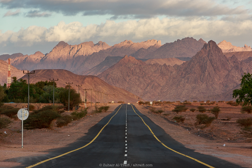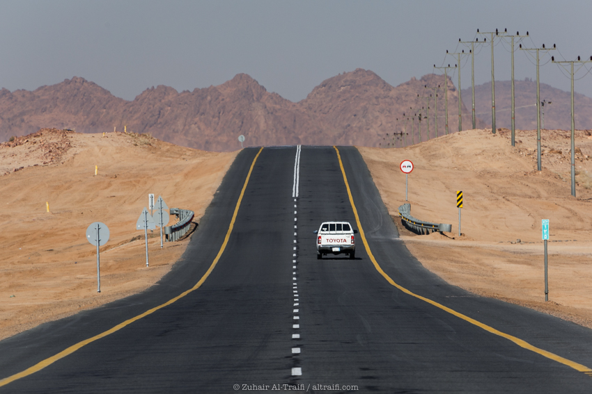 In my last photography trip I had planned to photograph a series of highway roads with single line with my telephoto lens so I can capture the road in the different perspective, so every time I head for another city I take the long way leading me to these kind of roads, the environment from the sands & the mountains are different from region to another and I’m still amazed by the scenes of the volcanics mountains colors every time I see them, I think I enjoy watching them more then green scenes! My trip was just in the north of Saudi Arabia so all the photos are in Qassim, Hail and AlMadinah Region.