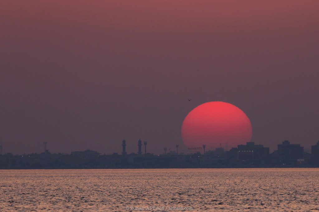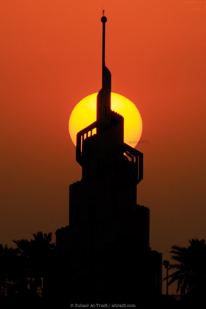 الشهر الماضي (أغسطس) بمناسبة أن الأجواء تحسنت (الرطوبة تجعل الأفق غير واضح) قررت المحاولة من جديد وطبعاً نسيت أن أفضل وقت هو عندما يكون الشروق بعد مغيب الشمس وبعد تشغيل اضاءة البرج، فشلت المحاولة وقررت المعاودة باليوم التالي لكن ظروف العمل منعتني