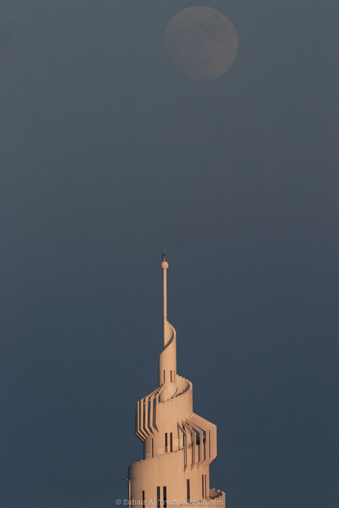 الشهر الذي يليه مباشرة (سبتمبر) قررت الخروج لتصوير فكرة لليوم الوطني تتضمن القمر وكانت فكرة صعبة، للأسف الشديد العلم المفترض أن يتم تركيبه من الأمانة لم يتم تركيبه، شاءت الأقدار وتوجهت لجزيرة المرجان مباشرة لكي أجرب تصوير القمر من جديد خصوصاً أن التوقيت مثالي جداً وكانت الأجواء صافية للغاية، شاهدت غروب الشمس واستعددت لتصوير البرج مع القمر