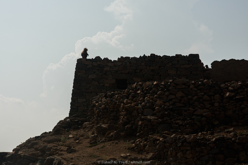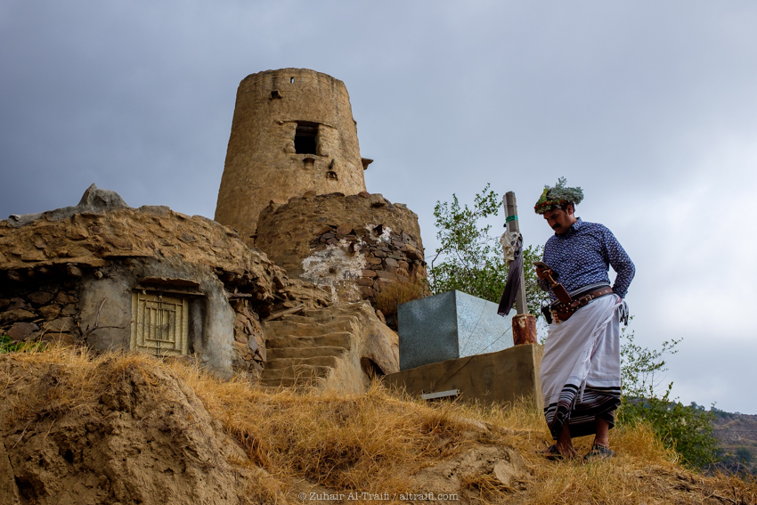 I had a good luck in the same day with meeting with one of locals who lives in AlHasher Mountains, Abu Sari Salman AlHureisi owns a farm there which has a really special lookout for the valley west of the mountain, it was 2 hour drive from Abu Arish and then he picked me up from a place in the main road to take me to the farm, I photographed him with his son Sari most of the time doing their usual routine there, also had to eat traditional lunch which is called Areeka (cooked grains, honey & dates) after that group of people came to an official visit to the farm & took advantage of documenting their visit, and then ended up spending the rest of the day in the farm. (I will publish full post & photos from this visit later)