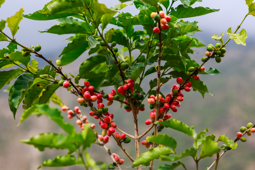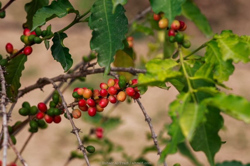 Coffee beans almost ready to harvest at AlHasher Mountains, Jazan Region – 10 October 2021