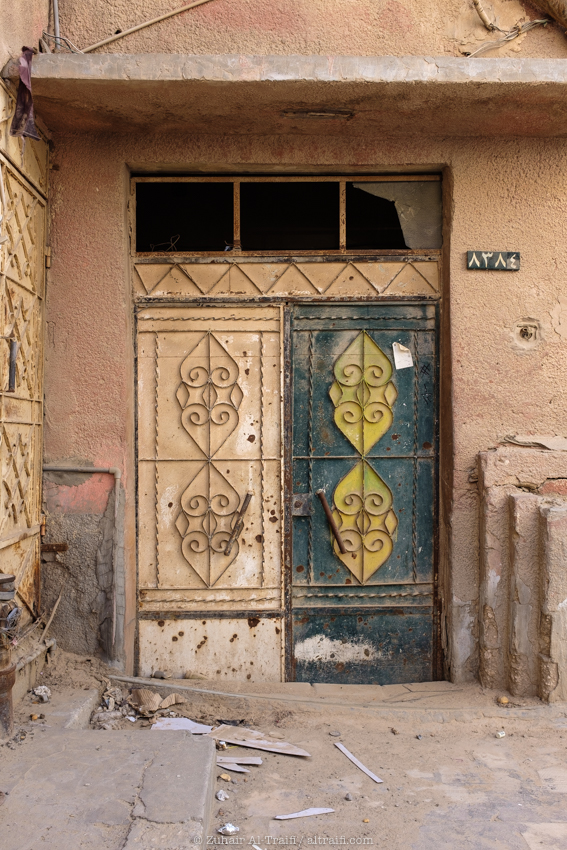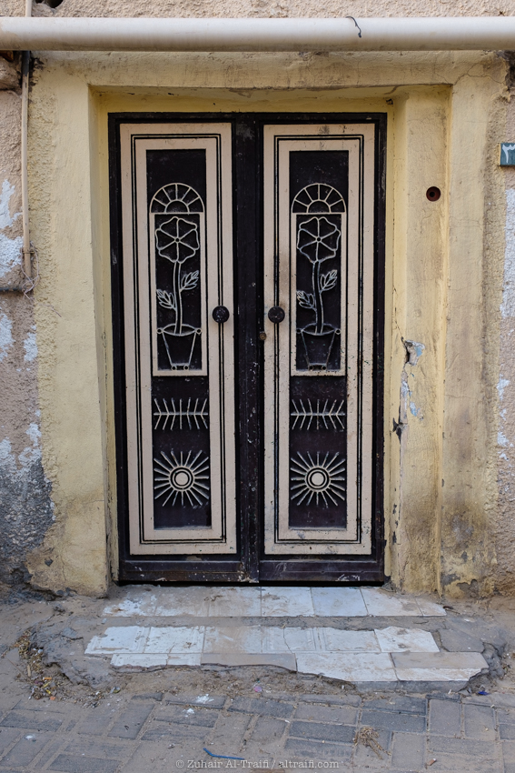 أول شيء لاحظته هو البيوت القديمة ظاهرة من الشارع الرئيسي وهذا الباب القديم العريض مثال على ذلك، غالباً كان هذا المكان محل قديم أو كراج صغير