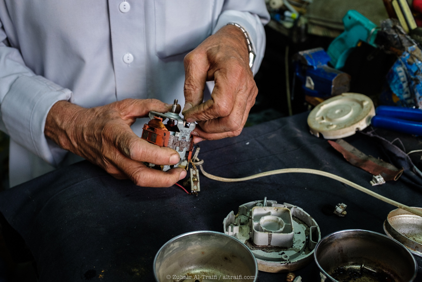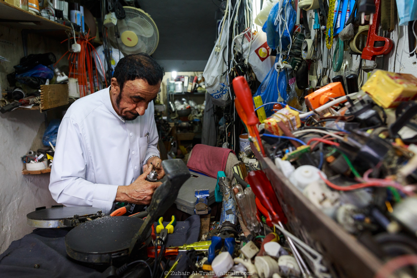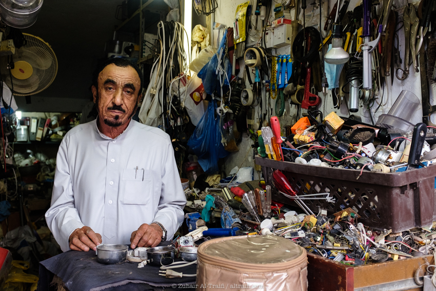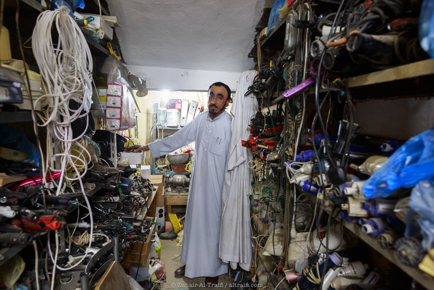 In the heart of the central market of Buraydah city is a very small workshop which isn’t wider then 2 meters, the owner Ali Mohammad AlTami (Abu Omar) which he took a career in repairing home appliances & telephone for decades