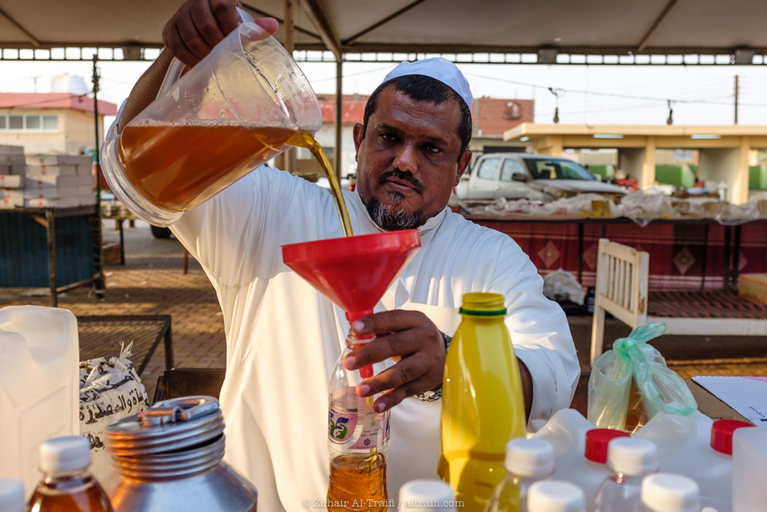 Hello all, this is the first ever post & photos from a complete new district which is called AlQunfudhah located in the far south of Makkah Region, I went out super early in the morning to visit the weekly Thursday market in AlQouz located 30 km from AlQundudhah city, like most of these open markets it has different merchandises but mostly it’s local, like making sesame food oil and lots of traditional home made candy in different flavors, while there is on the side women selling & making a breakfast dish for the costumers which is grilled fish with bread, because of the hot & humidity weather at that month I only photographed for about an hour & half.