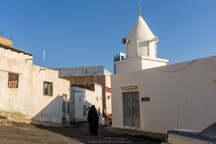 Woman walking beside one of the mosques in the area | امرأة تعبر احدى الممرات بجانب أحد مساجد الحي
