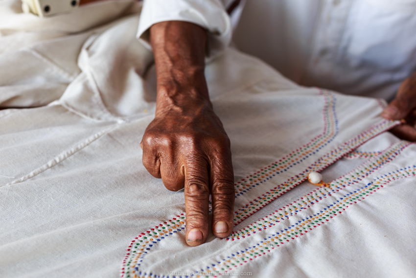 Uncle Ali mentioned that if done manually the quality & the life time of the cloth is very high that’s way they are still in demand specially because of his old reputation among the residence of Najran city in his detailed work on the cloth, Uncle Ali has one of his kids who is currently studying to be a nurse and like to learn sewing from time to time so he can inherit the profession of his family.
