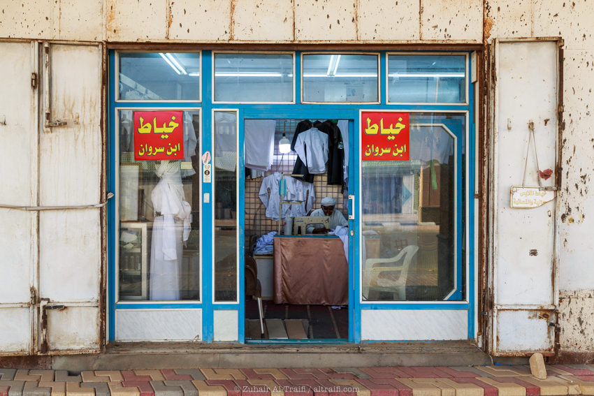 Ali bin Mohammad Al Abdullah also known as Bin Sirwan from Najran city South of Saudi works as a tailor specially for the traditional clothing in Najran and his small shop is located near AlJanabi Market