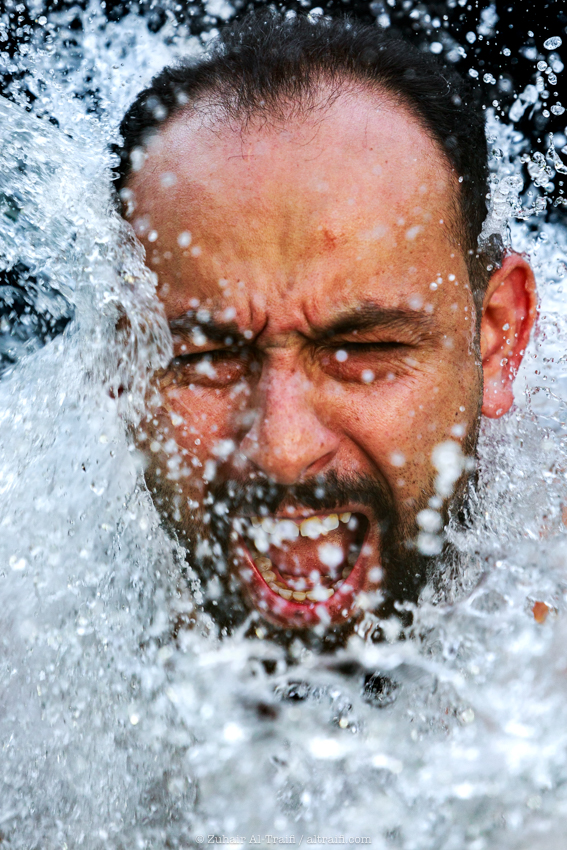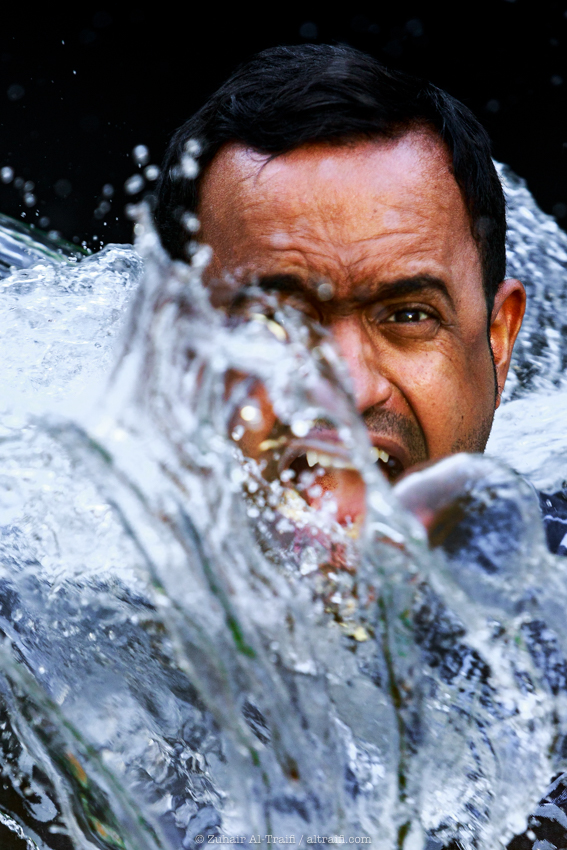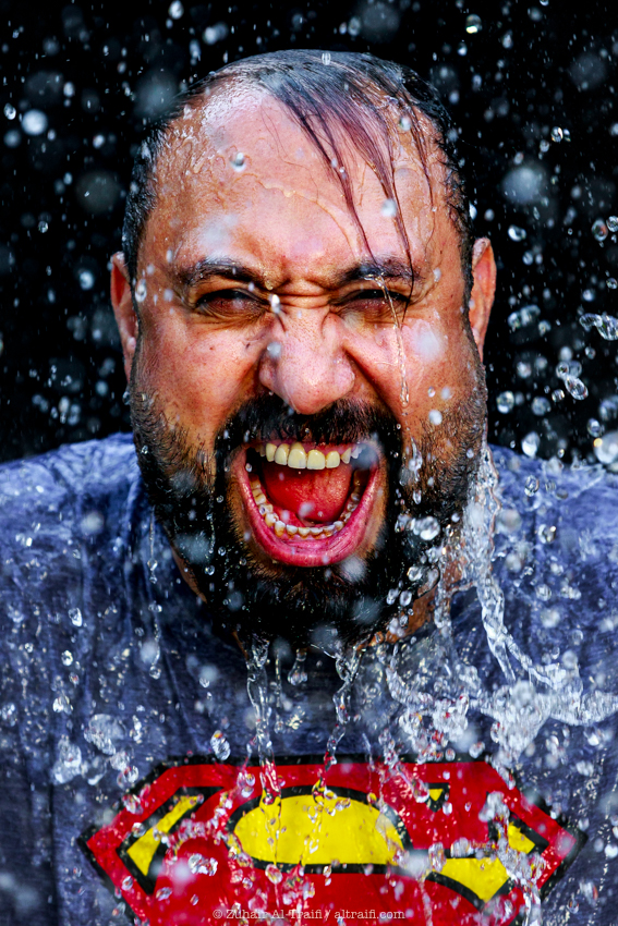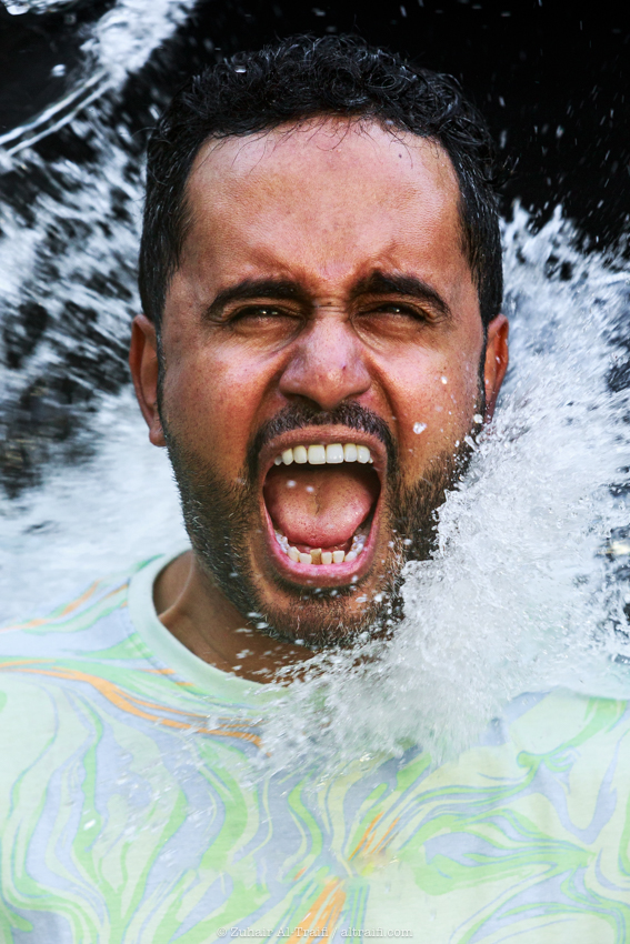 مرحبا مع تدوينة مختلفة هذه المرة بعيداً عن تصوير الشارع المعتاد، هذه المرة التدوينة عبارة عن بورتريهات، من وقت إلى وقت أحب أن أستغل تواجدي مع الأصحاب عند اللقاء بهم في تجمعنا السنوي في أحد المزارع لتصوير فكرة، والفكرة ذاتها تصبح أكثر اهتمام عندما تكون هناك وجوهاً مختلفة والتي بالنهاية تقودها إلى تحولها إلى سلسلة صور، الفكرة كانت عبارة عن إلقاء دلواً من الماء على الوجه من الجانبين في وقت واحد بينما يقوم الشخص بالتعبير عن لحظة معينة بالصراخ والغضب وفي لحظة وصول الماء يتحول ذلك التعبير إما إلى تعبير مصدوم أو تعبير فكاهي، في النهاية أردت أن ألتقط تعابير غير اعتيادية ضمن اطار مع إلقاء الماء وتطايره.