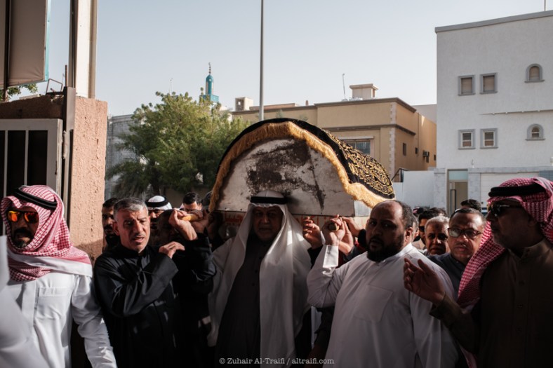 Documentary about burial in Saudi Arabia and to be exact in one of AlHasa villages, I already published years ago 2 blog post from the same subject, I’ll link them at the end of this post. The burial ceremony footage begin after the arrival of the deceased to the cemetery, people participate in carrying the deceased on a special carrier placed on the top a piece of cloth that has names of Allah and pieces from AlQuran, throughout the carrying they stop several time for praying and reading surah alfatiha before arriving to the grave, then they carefully place the deceased inside the grave and seal it with layers of boards & mud before finally doing the actual burying with the sand until it’s leveled to the ground.